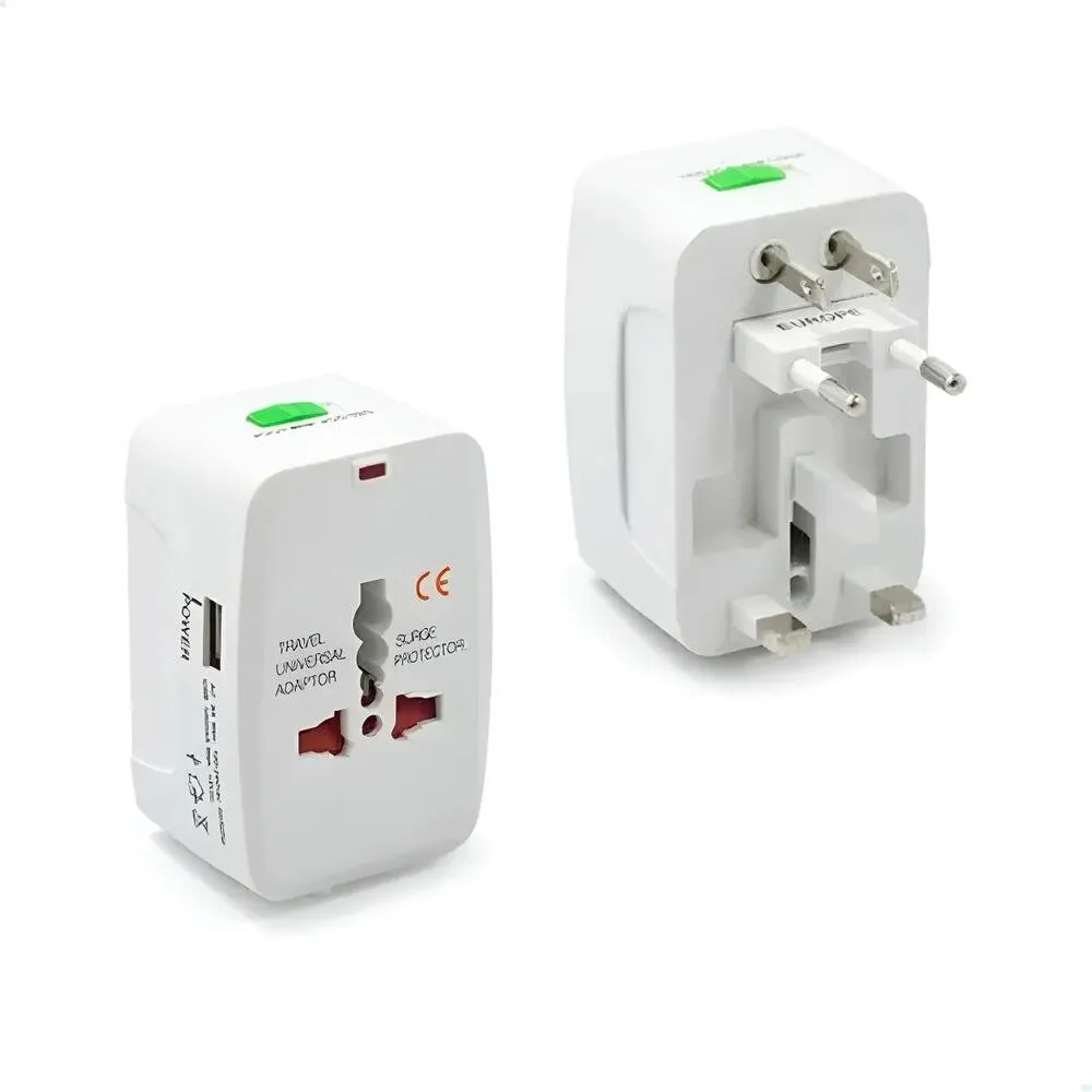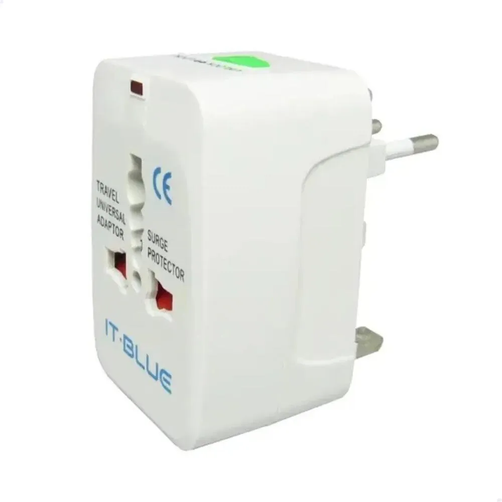 Adaptador de tomada projetado para possibilitar a conexão de dispositivos elétricos em diferentes padrões de tomadas, atuando como elemento intermediário entre o plugue do equipamento e a tomada disponível.