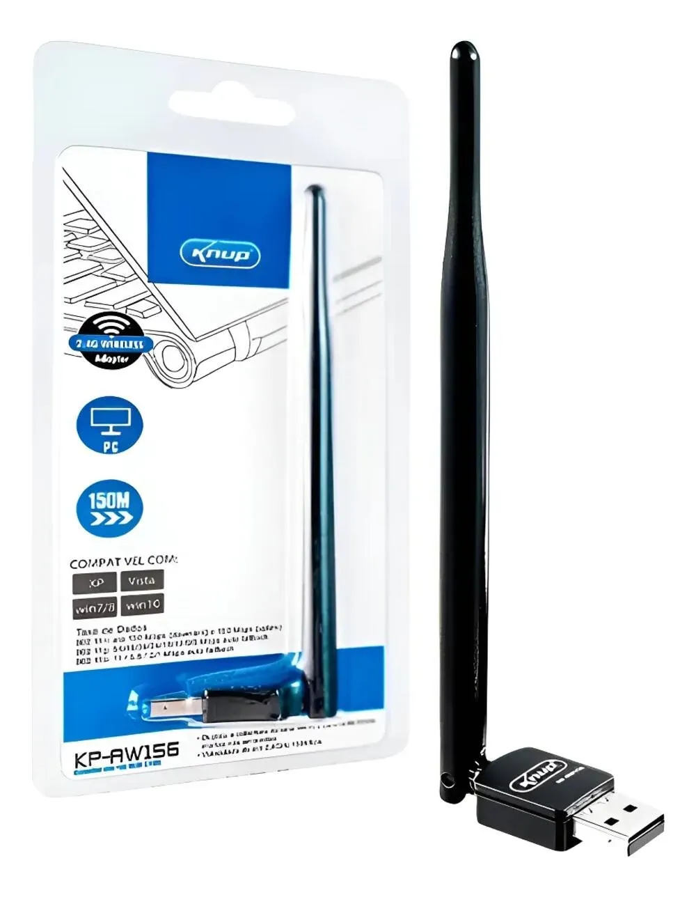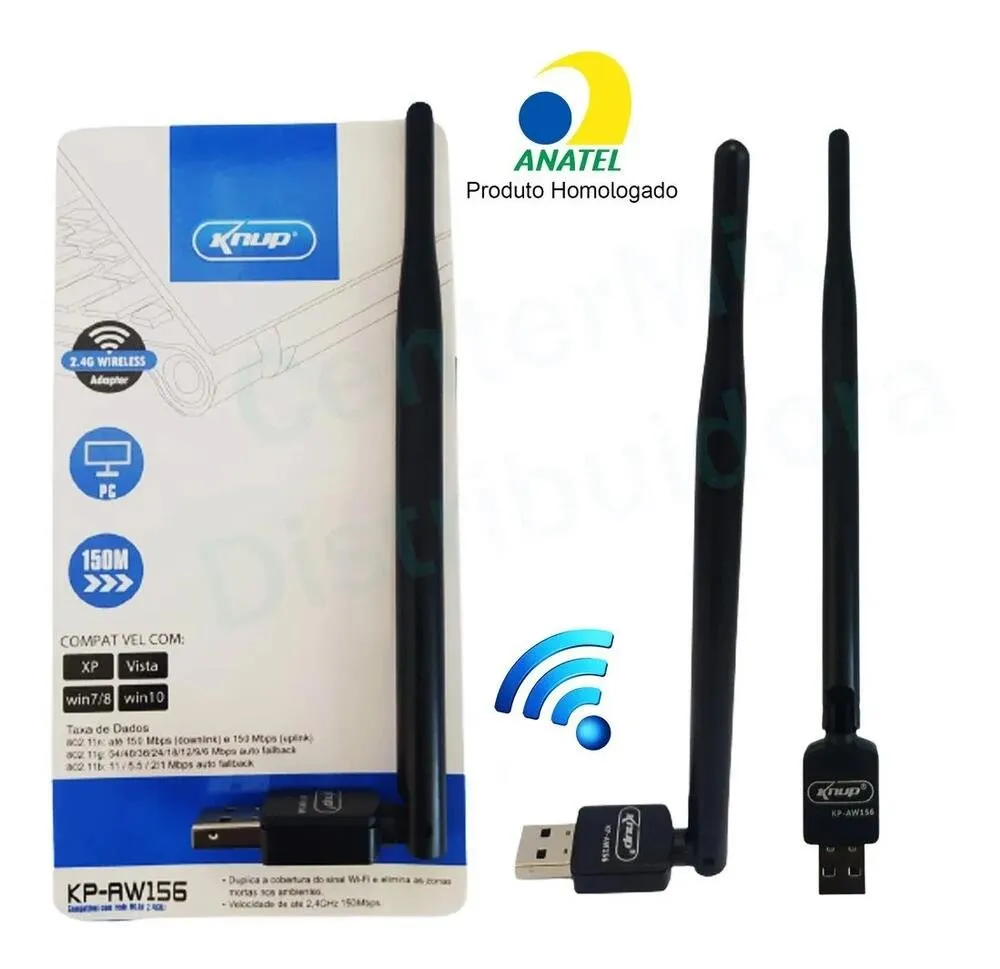 • 1 × Adaptador Wireless USB Knup KP-AW156 com antena externa
