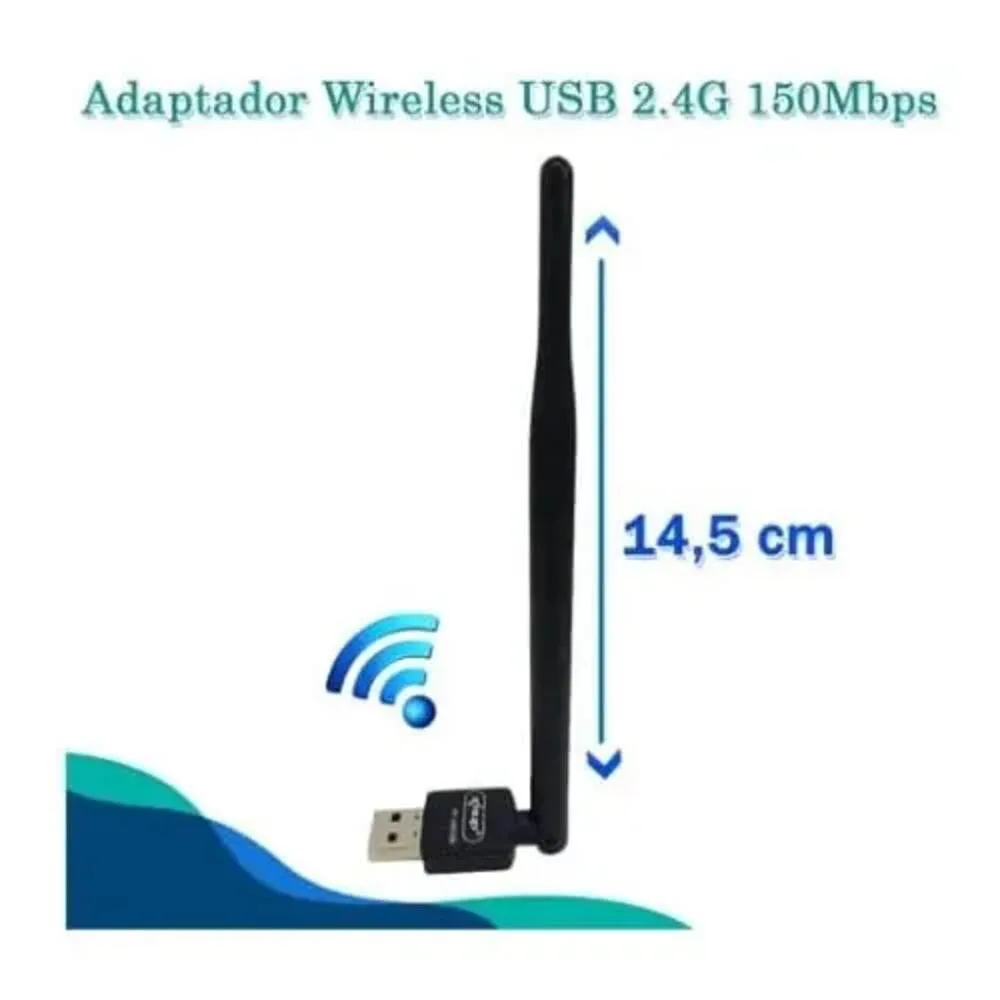 • Dimensões Aproximadas: ~20 cm × 3 cm (adaptador com antena)