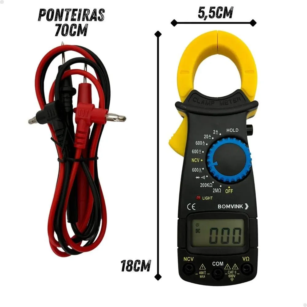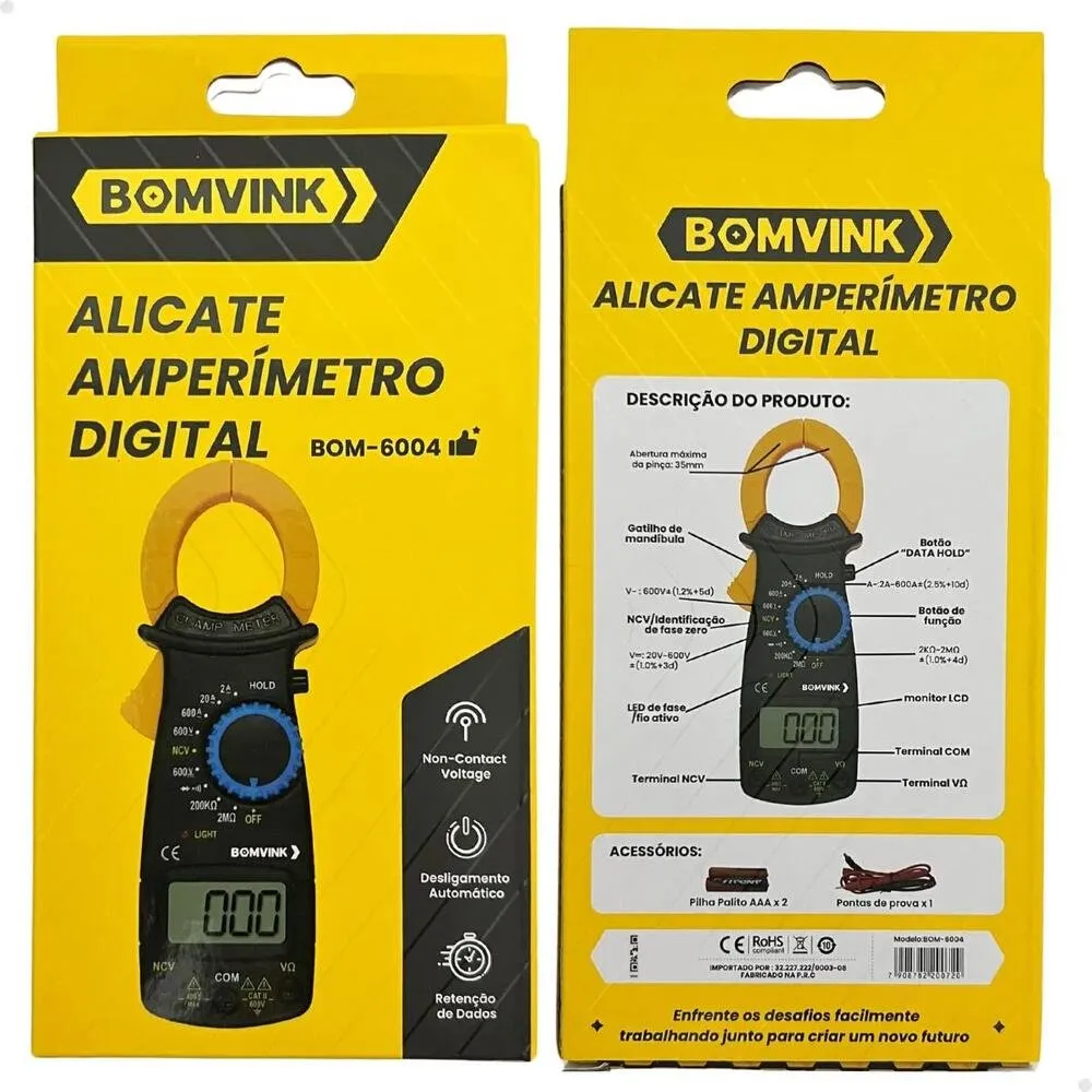 O Alicate Amperímetro Digital Bomvink BOM-6004 é uma ferramenta essencial para eletricistas e técnicos que buscam segurança, precisão e praticidade nas medições elétricas. Com capacidade para medir corrente até 600A e tensão até 600V, atende aplicações residenciais, comerciais e industriais leves.