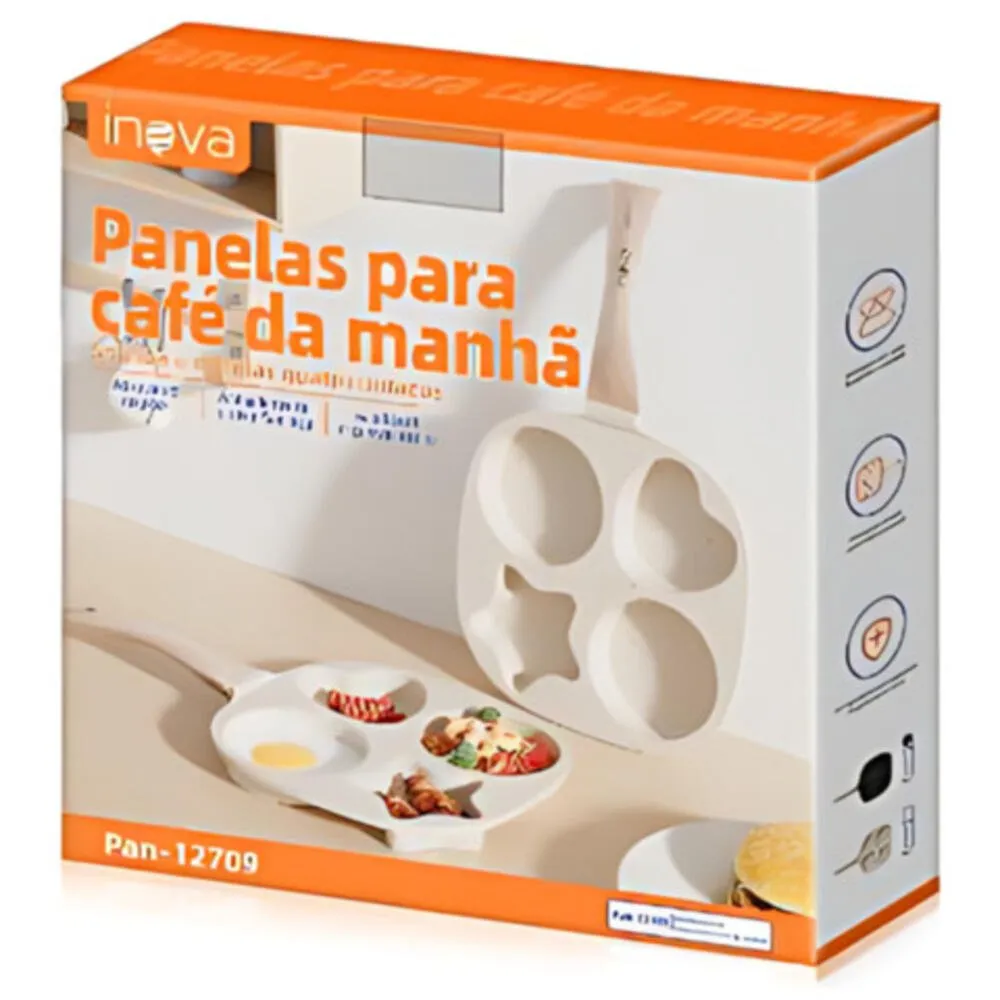 Prepare cafés da manhã mais divertidos e saborosos com a Frigideira Antiaderente Inova Pan-12709. Com 4 compartimentos exclusivos em formatos de sol, lua, estrela e coração, ela é perfeita para criar refeições criativas e agradar crianças e adultos.