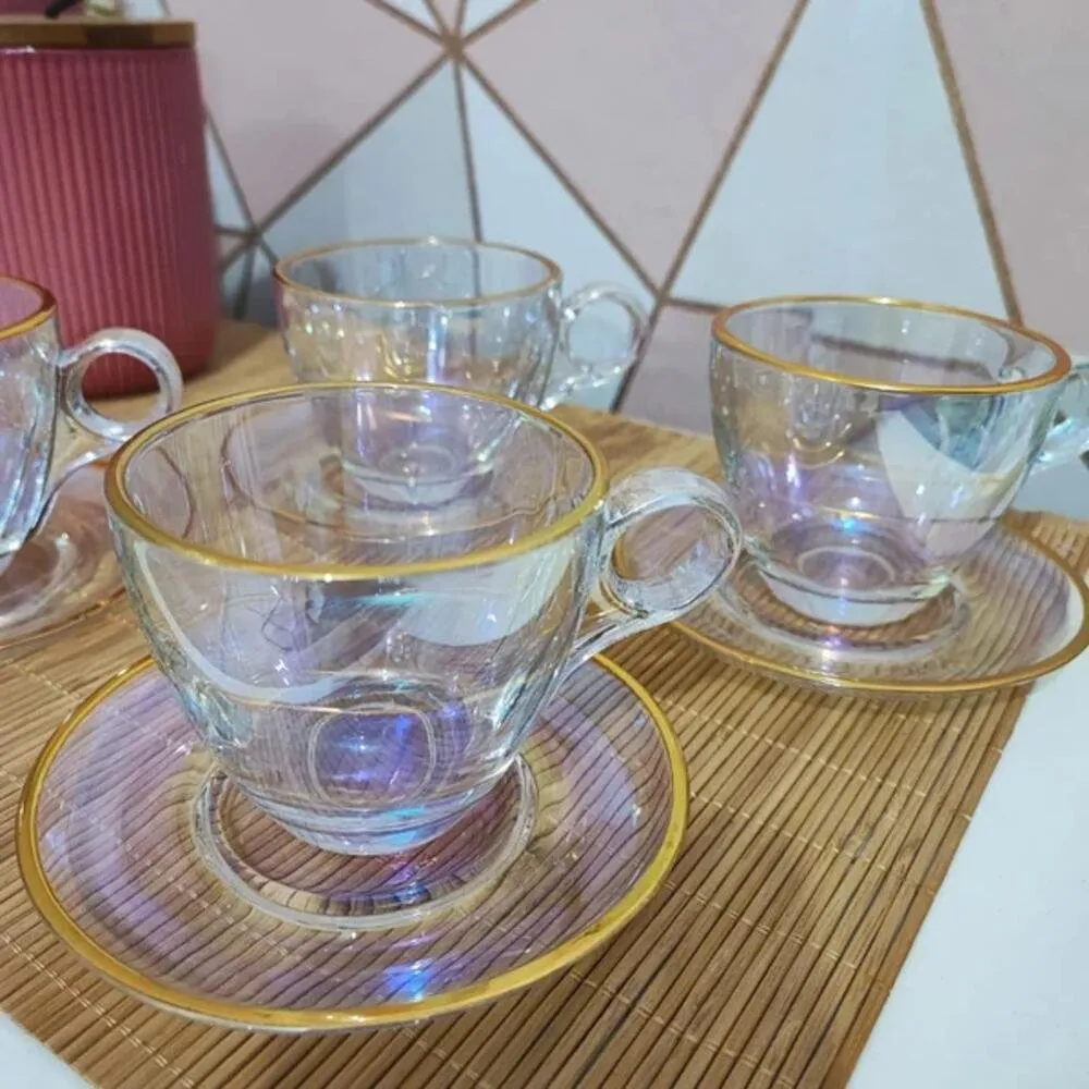 Jogo 4 Xícaras Com 4 Pires 170ml Hauskraft Premium Linha Cristal Menfis